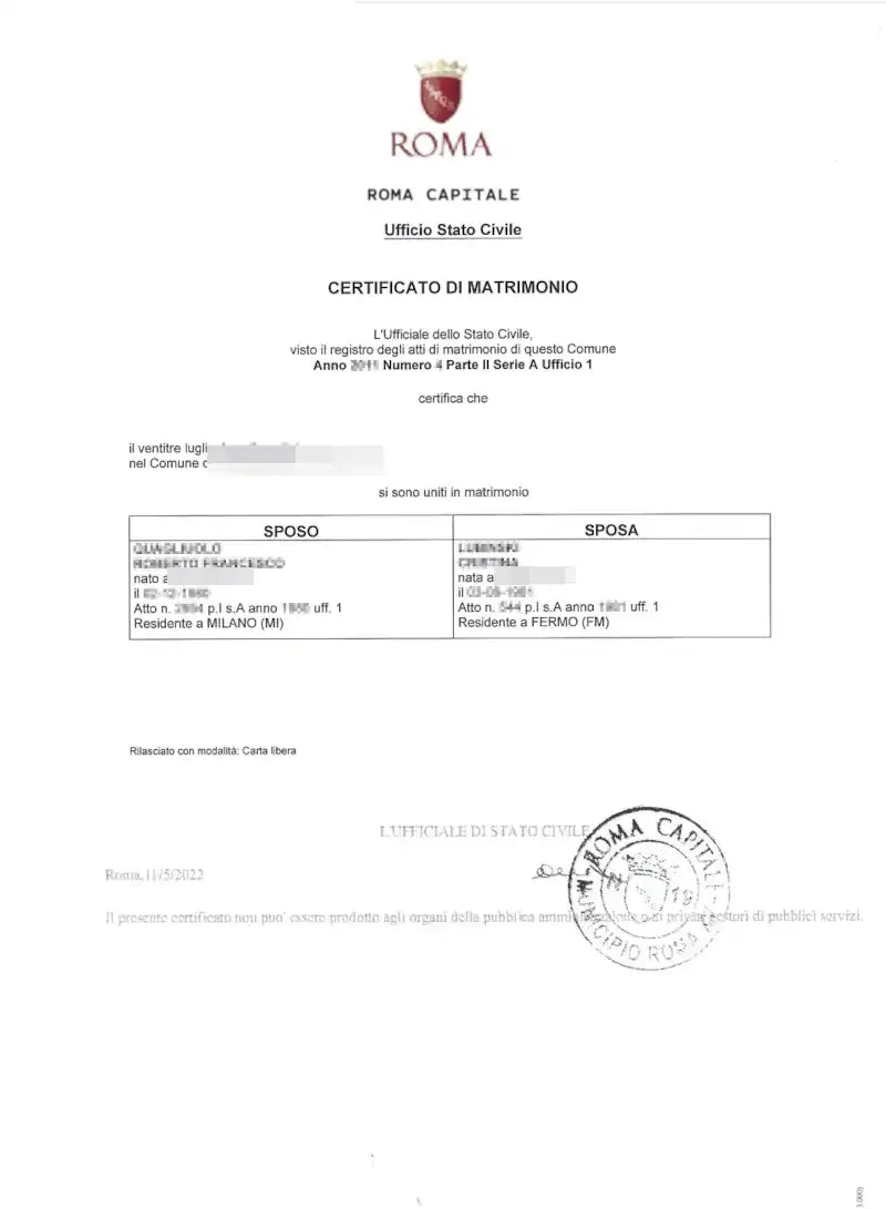 ¿Qué pasa si el matrimonio se celebró en el extranjero? Podemos tramitar la solicitud si el certificado de matrimonio se registró debidamente en un municipio italiano.